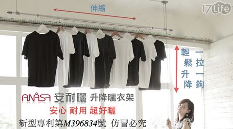 商品訊息簡述: 平均每組最低只要617元起(含運)即可購得【ANASA安耐曬】拉勾式升降曬衣架1組/2組/3組/4組,每組內含獨家奈米防鏽複合不鏽鋼防風伸縮桿1支!